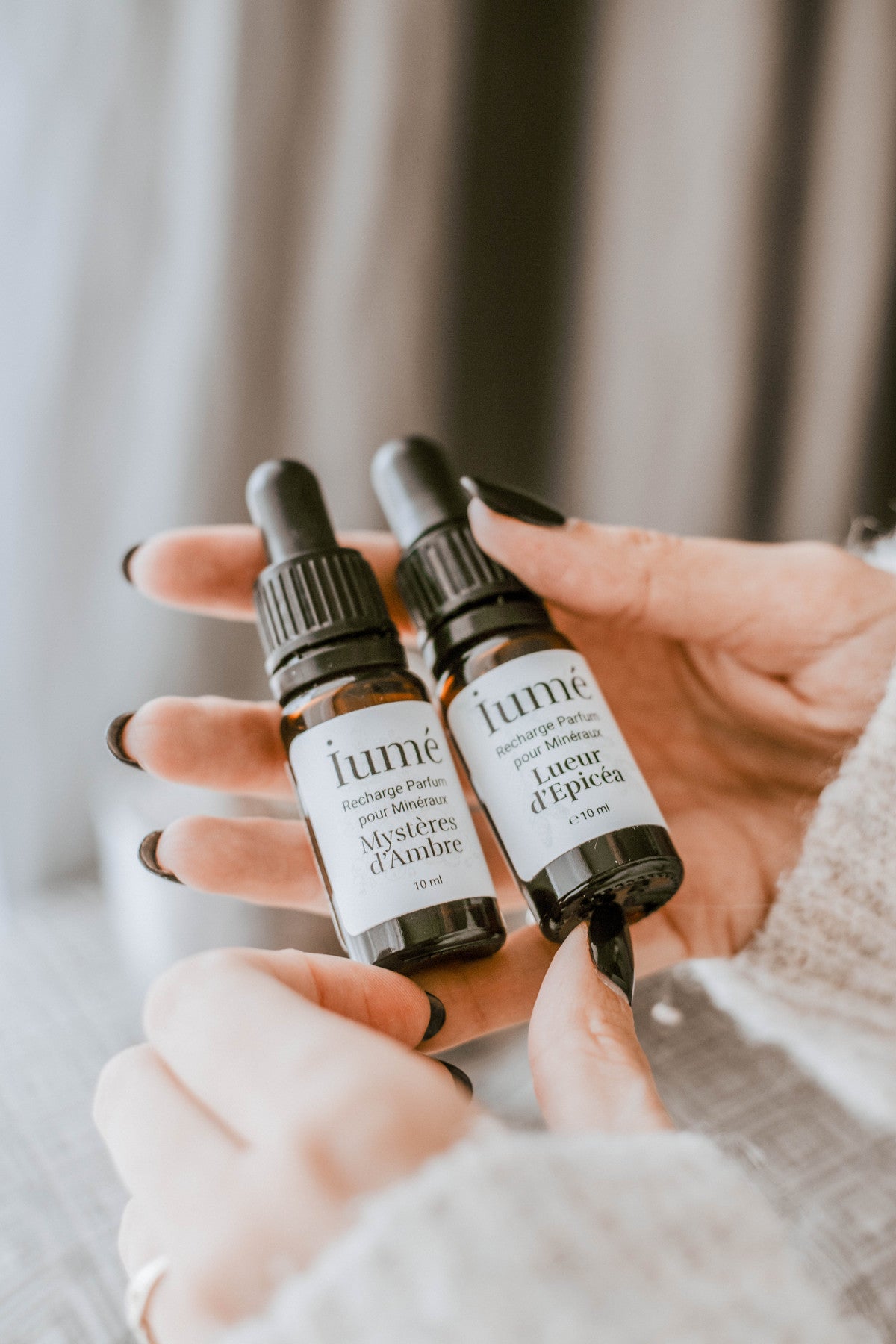 Mathilde, l'une des fondatrices de iumé, est à l'origine des senteurs qu'elle a longuement travaillées avant validation. Transformer une idée, une image en parfum est un procédé fastidieux qui demande beaucoup de concentration, de connaissances et d'imagination.